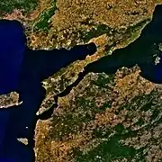 - to the Sea of Marmara and the Black Sea, by the Straits of the Dardanelles and the Bosporus respectively, in the east