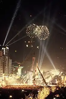In Tokyo, there were a series of concerts (NHK's Kōhaku Uta Gassen at NHK Hall, Johnny's Countdown Live at the Tokyo Dome) and a fireworks display. At midnight, temple bells across Japan were rung 108 times to "dispel the evils of mankind".[4]