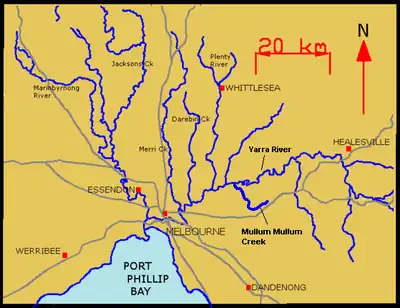 Location of the Mullum Mullum Creek in relation to the Yarra River and its tributaries