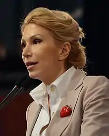 On 26 September 2021, the party's new leadership team under Cîțu was voted, validated, and consequently established as well.[85] Shortly after the congress, on 27 September, former president Ludovic Orban stated that Cîțu became persona non grata for a huge number of Romanian citizens and that he doesn't understand he will no longer be PM for too long, only with the mercy of PSD.[86] In the meantime, the PNRR (part of the Next Generation EU package and short for Romanian: Planul Național de Redresare și Reziliență) was signed and adopted in Bucharest on the occasion of Ursula von der Leyen's visit, mandated by the European Commission.[87] The Romanian PNRR is the 5th Next Generation EU plan adopted by volume of funds and most of the work and successful negotiations on it were carried out by USR PLUS ministers, in particular Cristian Ghinea. Most opinion polls conducted throughout 2021 registered a significant drop of trust both in Cîțu as PM and in the PNL in the perspective of the next Romanian legislative elections which are most likely going to take place in 2024. In the meantime, PSD initiated its own motion of no confidence which is scheduled to be debated on 30 September and voted on 5 October.[88] In addition, former party president Valeriu Stoica accused the recent political behaviour of PNL in the following manner: "PNL acts like PSD", further stating that the party is operating on a catch all ideology and consistent party switching as well as currently defying and breaching the constitution.[89]