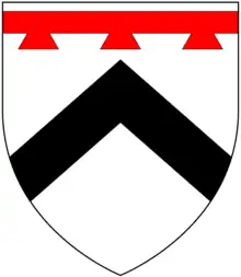 Arms of Prideaux: Argent, a chevron sable in chief a label of three points gules[3]