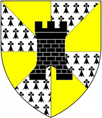 - George Hooper (1640-1727), of Grimley, Worcestershire, Bishop of Bath and Wells. The arms Gyronny of eight or and ermine, over all a castle triple-towered sable appear on a funeral hatchment in Rodden Church, Somerset, relating to his daughter Abigail Hooper (1684-1763), whose husband was John Prowse of Axbridge. Her monument survives in Axbridge Church.[22]
