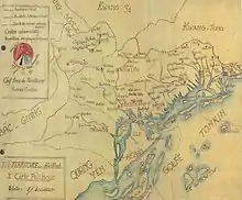 Zhigao's followers set up shop and through the mineral wealth of his holdings formed close ties with Chinese traders, including jinshi degree holders Huang Wei and Huang Shifu. He also recruited other Nong clan members such as Nong Zhizhong and Nong Jianhou.[29] Under the influence of Huang Wei and A Nong, Zhigao decided to declare independence. In 1052, Zhigao proclaimed the establishment of the Kingdom of the Great South (Danan Guo) and granted himself the title of Benevolent and Kind Emperor (Renhui Huangdi). Later he proclaimed the restoration of the kingdom of Nanyue. In the spring of 1052, Zhigao ordered the villages under his control to be burnt and led 5,000 subjects on the path to Guangzhou. By summertime, he had taken Yongzhou and reached Guangzhou, where his 50,000 strong army became bogged down in a prolonged siege. Despite cutting off Guangzhou from water, the city was well stocked with provisions, and the defenders fought back with crossbow defenses. The district magistrate Xiao Zhu foiled a waterborne attack on Guangzhou by setting fire to their ships.[30] After 57 days, Zhigao was forced to retreat as more Song reinforcements arrived. He held out at Yongzhou, defeating five Song commanders sent against him. The Song called in a veteran of the Song–Xia wars, Di Qing, to assume command of the anti-rebel forces. He gathered 31,000 men and 32 generals, including Fanluo tribal cavalry from the northwest that "were able to ascend and descend mountains as though walking on level ground."[31][22] Lý Thái Tông also offered to send 20,000 troops but the offer was refused out of fear that the troops would not leave afterwards.[31]