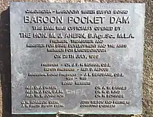 Plaque from the opening of the Baroon Pocket Dam