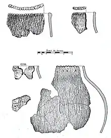 9,747 sherds were recovered in the 1947 excavations, with the pottery analysis based on 395 rim sherds and decorated body sherds.[9] In 1970–72, 3,746 sherds were recovered representing at least 64 vessels.[10]