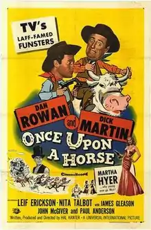 Once Upon a Horse... is a 1958 American Western comedy film written and directed by Hal Kanter. The film stars Dan Rowan, Dick Martin, Martha Hyer, Leif Erickson, Nita Talbot, James Gleason, and John McGiver with Olympic Gold medalist weightlifter Paul Anderson as the blacksmith. The film was released in September 1958, by Universal Pictures.[1][2][3]