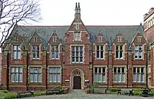Owen was appointed a director of the Improved Industrial Dwellings Association in London, and worked for many years in the Imperial Fire and Life Insurance Office. Roberts was asked to become Clerk to the Clothworkers' Company in 1866, largely because he was a fully qualified barrister, holding the office for over 40 years and becoming Master in 1909. He helped encourage the Yorkshire College at Leeds and University College, Bristol. A successful and active clerk he was instrumental in reviving the moribund sector. In 1870 the Gladstonian Education Act instructed the companies to organize greater facility for women and working-classes to expand the technical abilities. A bold plan was conceived to advance technical instruction by a triumvirate of company leaders, Sir William Sawyer (Drapers), Sir John Watson (Mercers) and Roberts himself.[3] On New Year's Eve he gained one of many such appointments as one of three Governors of the University of North Wales for a statutory period of five years. The other two Sir Hugh Owen, and Dr Isambard Owen were well-known academics, also of Welsh descent whose national identity was intrinsic to the appointments.[4] A regular membership of Cymmrodorion Society confirmed his own sense of Welshness.[5]