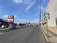 Pennsylvania Route 61 Truck (PA 61 Truck) is a truck route of PA 61 in Sunbury that helps larger vehicles avoid a narrow town square area and a tight intersection with PA 405. The northbound truck route splits from PA 61 in the downtown area by heading north on two-lane undivided North 5th Street for two blocks. Northbound PA 61 Truck turns west-northwest onto one-way Arch Street, passing a mix of homes and businesses and crossing Norfolk Southern's Buffalo Line at-grade. The northbound truck route ends at PA 405 on the east bank of the Susquehanna River, which heads south to provide access to PA 61.[8][44] The southbound truck route begins at PA 61 on the east bank of the Susquehanna River, heading east-southeast on one-way Chestnut Street. Southbound PA 61 Truck runs past residences and businesses, crossing Norfolk Southern's Buffalo Line at-grade. The truck route continues southeast onto Wolverton Street, passing between homes to the north and industry to the south and curving east. The road runs to the north of the Shamokin Valley Railroad and bends northeast past more homes and commercial establishments. Southbound PA 61 Truck ends at an intersection with PA 61 in the eastern part of Sunbury.[8][45]