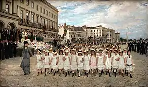 Louise Verhas-Saintenoy painted by her uncle Jan Verhas. She is the 8th girl from the left.[1]