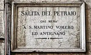 Originally, called il Imbrecciata (the debris-field)[1] and later O'Petraro,[5] the Petraio takes its name from the paths's original rocky character[1] the word stone translating to pietra in Italian and petra in Neapolitan.