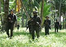 In 2012 the Philippines and the United States conducted joint military exercises.[64] As of 2012, a U.S. military contingent of 600, including Navy Seals and Seabees are stationed "indefinitely" in the Southern Philippines, in a declared non-combatant role to assist the Armed Forces of the Philippines in operations against the al-Quaida-linked Abu Sayyaf terrorist group primarily on the island of Basilan in western Mindanao and the Sulu islands, in particular Jolo, a long-time stronghold of Abu Sayyaf.[65]