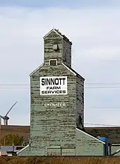 Fertilizer grain elevator along the train tracks in Pincher Station