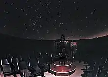 A planetarium (pl.: planetariums or planetaria) is a theatre built primarily for presenting educational and entertaining shows about astronomy and the night sky, or for training in celestial navigation.[1][2][3]