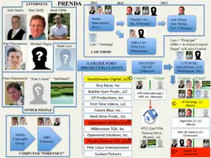- ↑ Farivar, Cyrus (June 3, 2013). "Prenda seeded its own porn files via BitTorrent, new affidavit argues". Ars Technica. Retrieved July 28, 2013.