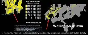 Displays of Aurora Australis are currently able to be seen from this locality, as the light pollution is shielded to some degree by the range of hills along the coastline.