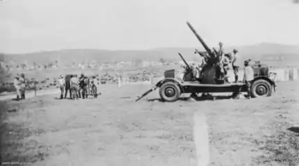 At the beginning of World War II in 1939, Britain possessed approximately 500 of these guns. Over the 1930s, they had been gradually modernized, and a limited production line was set up at the Commonwealth Ordnance Factory Maribyrnong, Australia.[26] Initially most were in the heavy anti-aircraft (HAA) role until replaced by the new QF 3.7-inch (94 mm) gun. Some were deployed as light anti-aircraft guns (LAA) for airfield defence, being transferred to the RAF Regiment when this was formed in 1942, until more 40 mm Bofors guns arrived[27] However, it was discovered at mobilization that the 233 guns in HAA reserve were missing various parts and predicted fire instruments.[28] One hundred and twenty were in France with the British Expeditionary Force in November 1939, compared with 48 of the modern QF 3.7-inch AA gun.[29]