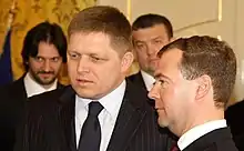 Robert Fico (Slovak pronunciation: [ˈrɔbert ˈfitsɔ]; born 15 September 1964) is a Slovak politician currently serving as the Prime Minister of Slovakia since 2023, having served previously from 2006 to 2010 and from 2012 to 2018. He has founded and led the Direction – Social Democracy (Smer) party since 1999. Fico holds a record as the longest-serving prime minister in the country's history, having served for a total of over 10 years. First elected to Parliament in 1992 (whilst within Czechoslovakia), he was later appointed to the Council of Europe. Following his party's victory in the 2006 parliamentary election, he formed the first Fico Cabinet.