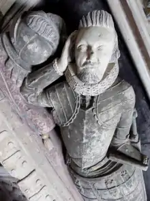 He died without progeny on 19 April 1614,[24] "having long languished" as he wrote in his will dated 7 January 1612.[20] Legend however states that he was either killed fighting pirates near Bucks Mills,[6] or was killed together with many others at a battle at Bitworthy,[20] near Bucks, the site of which is memorialised by a field named "Bloody Park".[25] It is believed that a survivor from this battle sought refuge in Woolfardisworthy Church, but died from his wounds in the churchyard, having buried his "small framed cross" in the graveyard.[25] This cross was discovered many years later by a vicar's daughter, but was lost in 1993. A field between Bucks and Woolfardisworthy Church has the ancient name "Paradise", where it is believed a communal graveyard exists for all the men killed at Bitworthy.[25] Another story explaining the existence of the cross found in the graveyard is that it came from a Spanish sailor whose warship in the Spanish Armada had been wrecked in a storm off the coast in 1588, who similarly attempted unsuccessfully to reach the sanctuary of the church.[25]