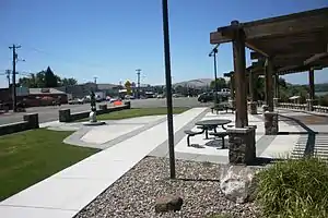 Looking west from park commemorating Sacajawea toward Badger Mountain through business zone