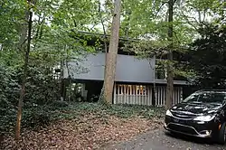 The Robert and Phyllis Scott House is a historic home located at Westminster, Carroll County, Maryland, United States. It is situated atop a ridge on a heavily wooded lot and is a two-story, "butterfly roof", five-bay by two-bay rectangular International Style building set on piers, with several rooms on grade in the center of the house. The house was constructed in 1953–54 to the design of architect Henry Hebbeln of New York.[2]