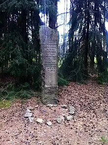 The last wolf in the area was destroyed by a 61 years of age farmer named Hermann Gaatz on 27 August 1948 around the Schotenheide area between Eilte and Rodewald. It followed what had become a period of local hysteria known as Würger vom Lichtenmoor, or the Strangler of Lichtenmoor, after a number of domestic pets, cattle, sheep and wildlife had been found mutilated injuries tended to be unusually clean cuts and around the hind right quarters, which suggested a human with a knife rather than those inflicted by a predatory animal). A stone was positioned on the very spot where the animal fell, which had been found to be a 6-year-old male weighing 43 kg, with a shoulder height of 85 cm and length of 1.70 cm, who last seen stalking deer.