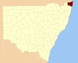 Rous County is one of the 141 Cadastral divisions of New South Wales. It is located at the north-east tip of the state. It is bordered on the north by the border with Queensland and on the south by the Richmond River. It contains Lismore, Byron Bay and Murwillumbah.