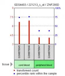 25. "GDS596 / 221213_s_at / ZNF280D". GEO Profile. NCBI. Retrieved 7 May 2014.