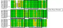 Multiple sequence alignment of orthologs for five zinc finger domains reveals high conservation.
