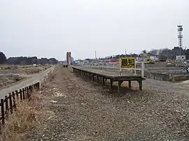 • "JR気仙沼線 【前面展望 2】 南気仙沼⇒陸前階上" (video). YouTube.com. Archived from the original on 2021-12-13. Retrieved 2011-04-26. video of a train trip from Minami-Kesennuma Station to Rikuzen-Hashikami Station in 2009, passing through Matsuiwa Station and Saichi Station without stopping at around 03:05 minutes and 05:05 minutes, respectively. Satellite photos (e.g., in Google Maps) showed that large sections of track and railway bridges were severely affected or washed away by the 2011 tsunami. Minami-Kesennuma Station, Matsuiwa Station and Saichi Station were all badly damaged or destroyed.