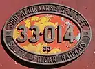 In the SAR era, the inner parts of cabside locomotive number plates were often unofficially painted in various colours to identify the depot to which the locomotive was allocated. Judging from the flaked paint on the plate in the picture alongside, no. 33-014 saw service in several regions over the years.[1]