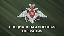 A banner of the Russian Ministry of Defence with the phrase "special military operation"