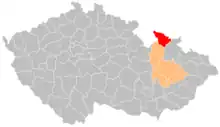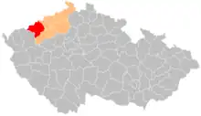Czech districts with an ethnic German population in 1934 of 20% or more (pink), 50% or more (red), and 80% or more (dark red)[10][11] in 1935