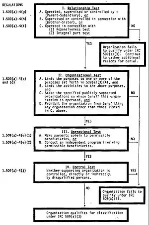 - ↑ Mark Rambler, Best Supporting Actor: Refining the 509(a)(3) Type 3 Charitable Organization, 51 Duke L.J. 1367, 1378 (Feb 2002).