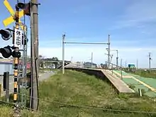 The station was destroyed on March 11, 2011 due to damage associated with the 2011 Tōhoku earthquake and tsunami, and services were replaced by provisional bus services.[1] The station reopened on May 30, 2015 on a higher ground where the former community around the station would be reconstructed.[2][3] Due to the relocation, the distance from Aoba-Dōri was changed from 32.4 kilometers to 32.2 kilometers.[4]
