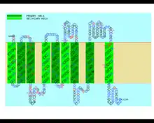There is a domain of unknown function, DUF2781 ( pfam10914 family) spanning amino acids 218 to 359 in the C-terminus of the protein.[6] There are nine transmembrane regions in this protein. The first one contains the signal peptide which is eventually cleaved following protein localization to the ER. A terminal KHHQ sequence is an endoplasmic reticulum retention signal.[13]