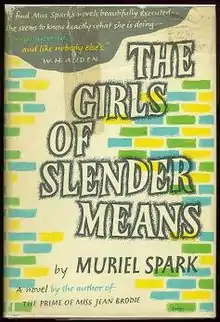 The Girls of Slender Means is a novella written in 1963 by British author Muriel Spark. It was included in Anthony Burgess's 1984 book Ninety-Nine Novels: The Best in English since 1939 — A Personal Choice.[3] In 2022, it was included on the "Big Jubilee Read" list of 70 books by Commonwealth authors, selected to celebrate the Platinum Jubilee of Elizabeth II.[4]