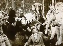 The Ringtailed Rhinoceros (also cited The Ring-Tailed Rhinoceros) is a lost 1915 American silent comedy-drama film that depicted the ruinous effects of alcohol on a good-natured man and on the lives of the people around him.[2][3] Like snakes and "pink elephants" that have been used in many societies to symbolize heavy drinking or been associated with the hallucinations of drunkards, the main character in this "'photophantasy'" blamed instead a "Ringtailed Rhinoceros" for his excessive use of wine and liquor.[lower-alpha 2][4]