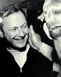 The entire Ohio State sideline screamed for an interference penalty to be called, and Hayes stormed onto the field, launched a profanity-laced tirade at the referee, Jerry Markbreit, and tore up the sideline markers, receiving a 15-yard unsportsmanlike conduct penalty. A further enraged Hayes then proceeded to throw the penalty flag into the crowd, began destroying the yard markers and threw the first-down marker into the ground like a javelin before being restrained by Buckeyes team officials; Hayes was then assessed an additional 15-yard penalty and ejected. Hayes was later suspended for one game and fined $1000. As the Wolverines proceeded to run out the clock, OSU linebacker Randy Gradishar was ejected after he slugged Tom Slade through his facemask and starting a ten-minute bench clearing brawl.[22] Michigan fans soon streamed onto the field to celebrate the close call and what would become Schembechler's only unbeaten and untied regular-season team.