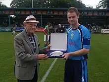 Tony McDonnell, receiving an award for his 250th UCD appearance