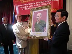 Trương Tấn Sang (born 21 January 1949) is a Vietnamese politician, who served as the seventh President of Vietnam from 2011 to 2016. He was one of Vietnam's top leaders, alongside prime minister Nguyễn Tấn Dũng and Party general secretary Nguyễn Phú Trọng.[1] In July 2011, Trương Tấn Sang was elected state president of the Socialist Republic of Vietnam by the National Assembly of Vietnam and nominated by his predecessor Nguyễn Minh Triết who retired from office.