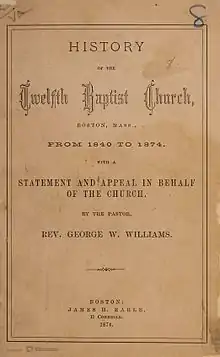 Title page of History of the Twelfth Baptist Church by George Washington Williams, 1874