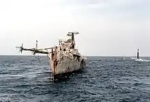 Hissem as a target ship in 1981. The submarine HMS Courageous can be seen on the right.