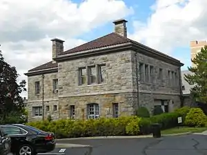 Built in 1922, O’Hara Hall was originally called the Glen Alden building and served as the Scranton administrative headquarters for the Glen Alden Coal Company, which at one time had extensive anthracite operations in the Scranton area.[86] Located at the corner of Jefferson and Linden Avenues, the building was sold to the GA Building Corp in 1955 before being acquired by Alden Associates in 1958 before its title was transferred to the Prudential Savings Bank of Brooklyn.[86] During this time, it served as office space for a variety of local Scranton businesses and professional offices. The Neoclassical, six-story building was sold to the University of Scranton in 1968 for $157,000.[87]