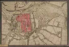 Map of the town in 1750, Nr.22 is the Upper Market