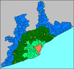 Barcelona metropolitan area in blue