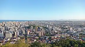 The Jacarenema Ecological Reserve, a 307 hectares (760 acres) conservation area established in 1997, lies along the coast to the south of the main city and contains the mangrove estuary of the Jucu River.[3] The Morro do Penedo Natural Monument protects a granite rock mass about 132 metres (433 ft) high on the coast of Vitória Bay.[4]
