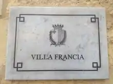 Villa Francia, initially named as Palazzo Francia, then named as Villa Preziosi, and officially known as Palazzo Francia[1][2] and Francia Estate,[3] is an 18th-century palace in Lija, Malta. The palace was built circa 1757,[4] by Francesco Preziosi,[5] with baroque architecture that gave a sense of pride and power to noble people at the time. The first ambitious owner became bankrupt[4] with the expenses of the palace, to make it an outstanding building and incomparable with others, and because of this he was pressured to sell his possession by the Order of St. John to pay his accumulated debts.[6][7]