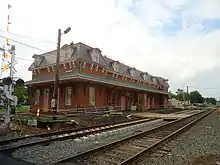 The depot at Wallingford was built in 1871 by the Hartford & New Haven Railroad on the Springfield Line, and was built in a French Second Empire style similar to that of the Windsor train station.[5]