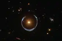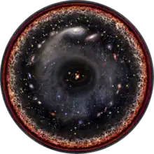 - In considering the structure of the universe... Einstein assumed... the irregularities in the distribution of matter can be neglected [i.e., the universe is homogeneous]. ...he noted that the largest velocities then assigned to the stars and nebulae were very small compared with the velocity of light. In 1917... the immense red-shifts of the farther nebulae were unknown. Einstein, therefore, considered a model of the universe in which matter was distributed in a uniform and continuous manner, the relative motion of the various parts being negligible [i.e., a static universe]. Following Seeliger, he found it impossible to regard the system as filling the whole of [infinite] Euclidean space. Also he could not regard the universe as an island in infinite space. For, in applying a well-known theorem of Boltzmann relating the densities at various points of space in which a distribution of particles is moving at random, he showed that zero density at the boundary would necessitate zero density at all points inside.