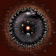 - All change is relative. The universe is expanding relatively to our common material standards; our material standards are shrinking relatively to the size of the universe. The theory of the "expanding universe" might also be called the theory of the "shrinking atom". […] Let us then take the whole universe as our standard of constancy, and adopt the view of a cosmic being whose body is composed of intergalactic spaces and swells as they swell. Or rather we must now say it keeps the same size, for he will not admit that it is he who has changed. Watching us for a few thousand million years, he sees us shrinking; atoms, animals, planets, even the galaxies, all shrink alike; only the intergalactic spaces remain the same. The earth spirals round the sun in an ever‑decreasing orbit. It would be absurd to treat its changing revolution as a constant unit of time. The cosmic being will naturally relate his units of length and time so that the velocity of light remains constant. Our years will then decrease in geometrical progression in the cosmic scale of time. On that scale man's life is becoming briefer; his threescore years and ten are an ever‑decreasing allowance. Owing to the property of geometrical progressions an infinite number of our years will add up to a finite cosmic time; so that what we should call the end of eternity is an ordinary finite date in the cosmic calendar. But on that date the universe has expanded to infinity in our reckoning, and we have shrunk to nothing in the reckoning of the cosmic being.